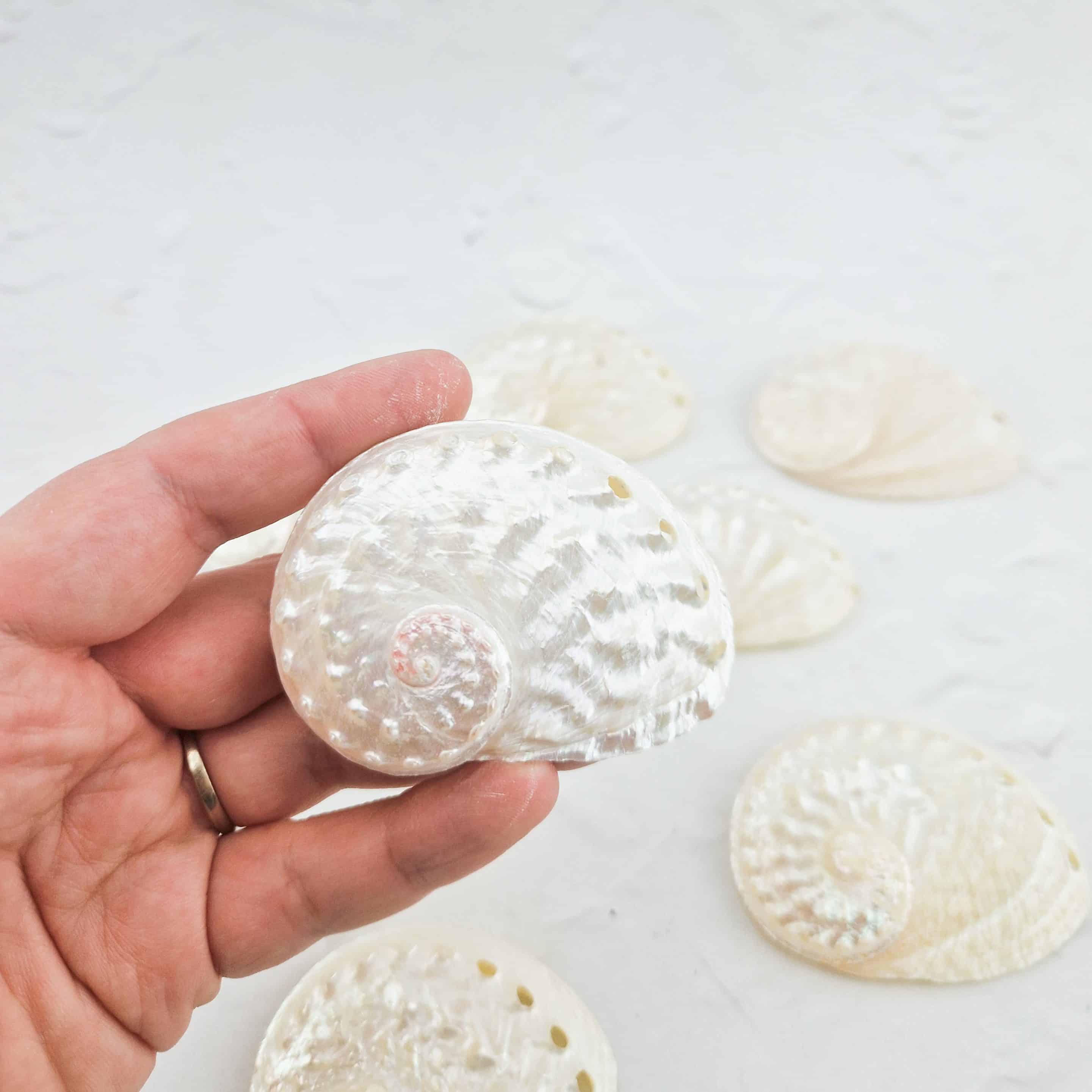 De schelp wordt vaak gevuld met amethist, bergkristal of hematiet om stenen in op te laden of te ontladen. Daarnaast kan er in deze schelp ook salieof palo santo gebrand worden.