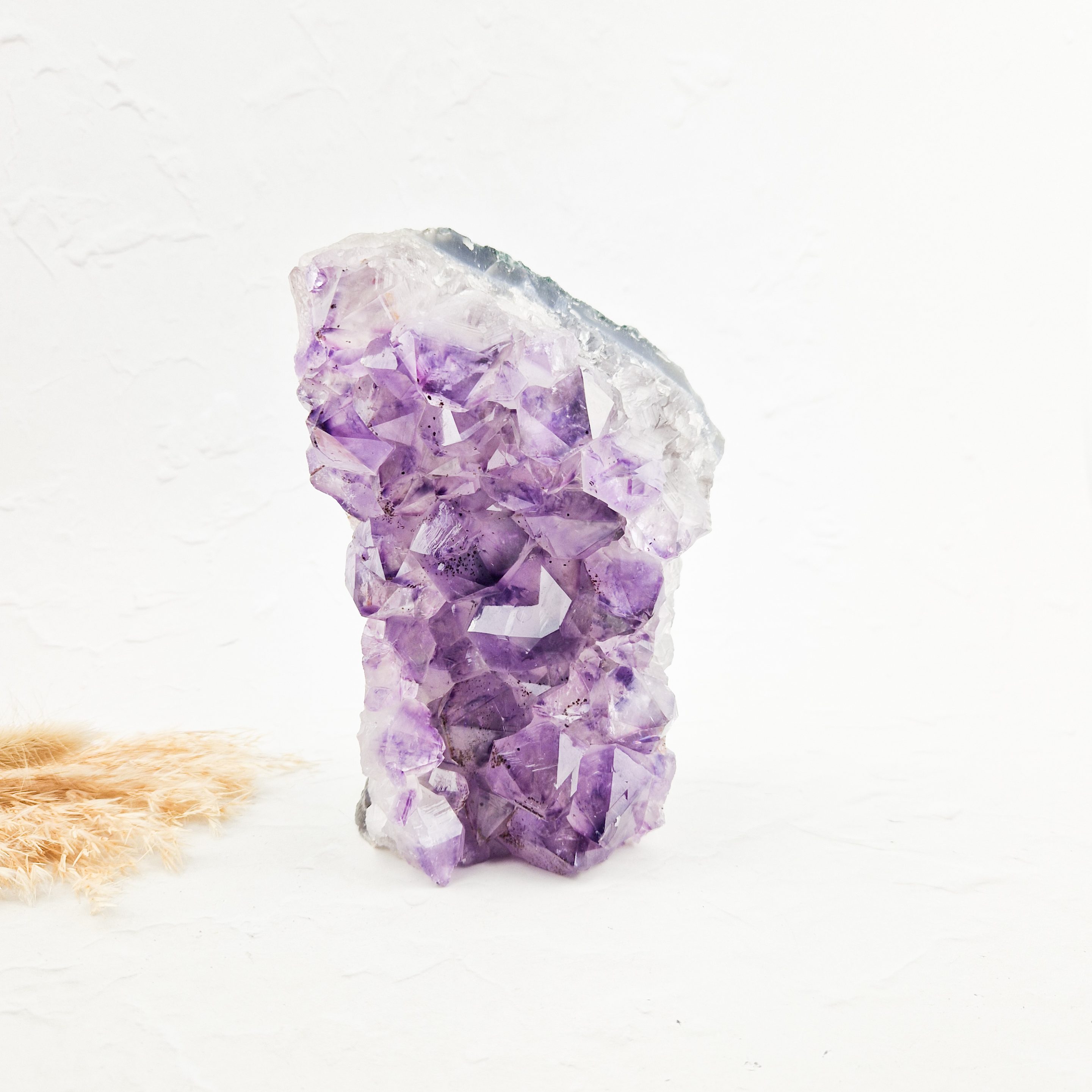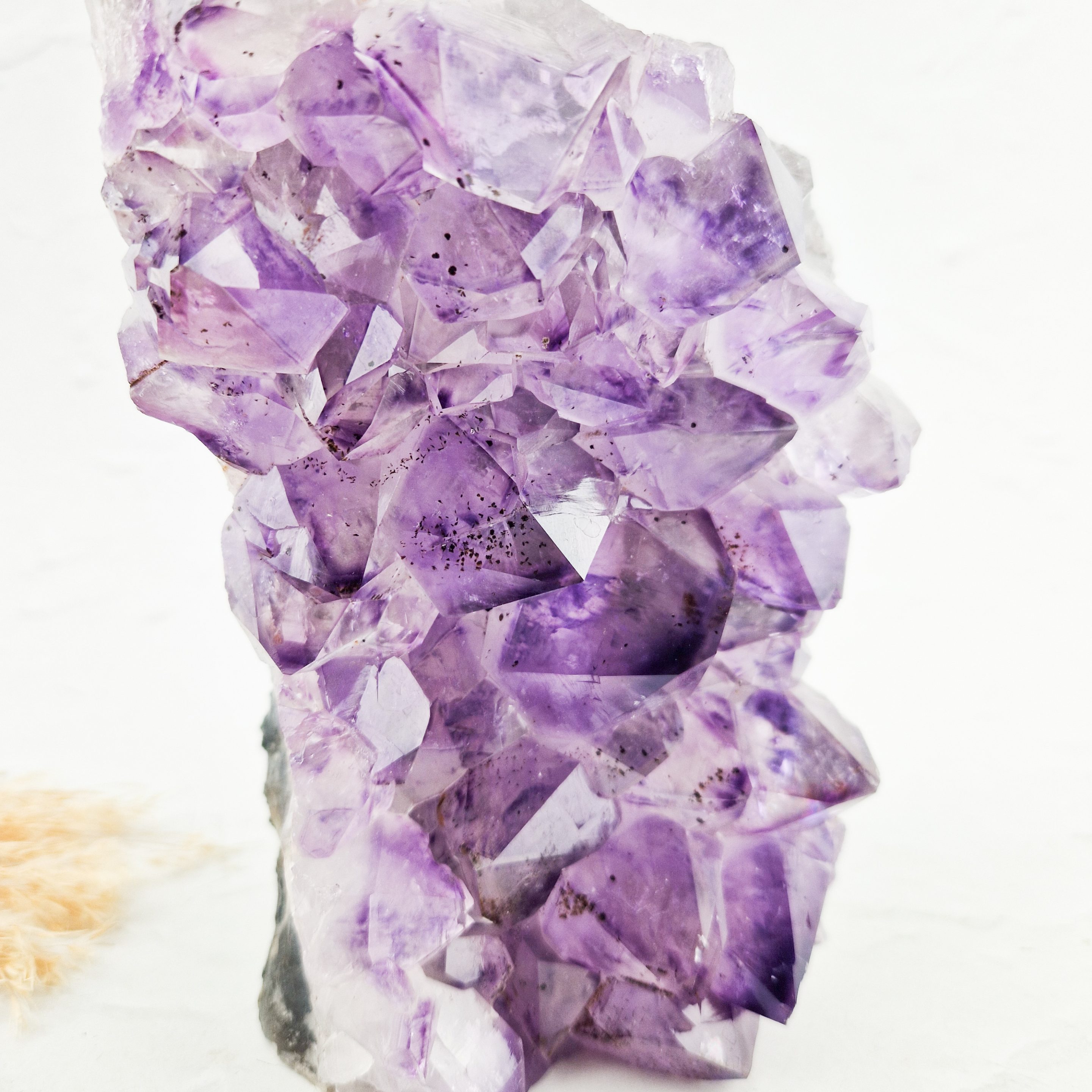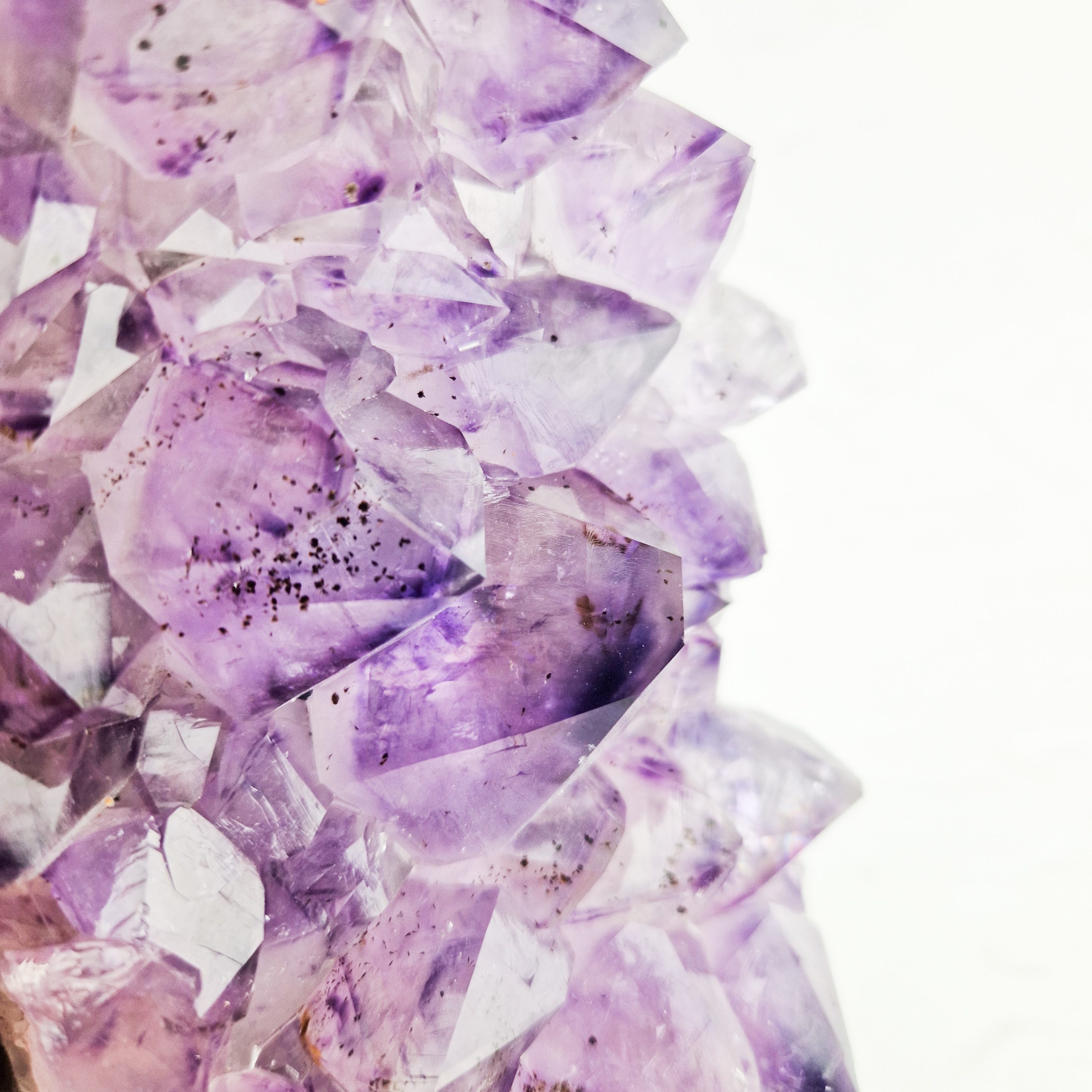 – Deze lamp is gemaakt van een grote amethist cluster en is een ware eyecatcher voor in je interieur. Overdag is dit een prachtige statement piece om naar te kijken, in de avonduren verspreidt de lamp een zacht, rustgevend en sfeervol licht,