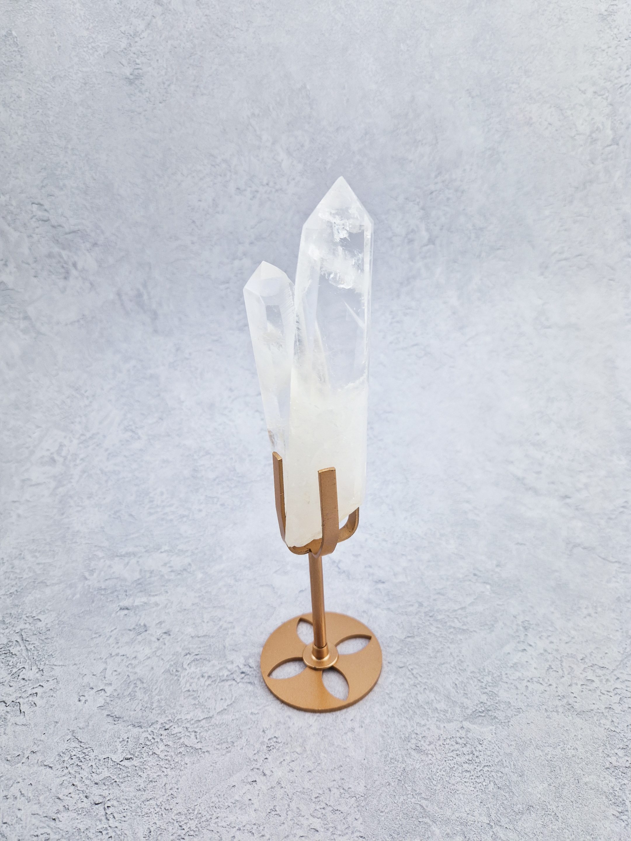 Bergkristal staat bekend om zijn zuiverende werking en brengt rust, helderheid en een positieve energie. In combinatie met de stijlvolle standaard, is dit een echte eyecatcher die perfect tot zijn recht komt in de woonkamer, slaapkamer of een andere rustgevende plek.