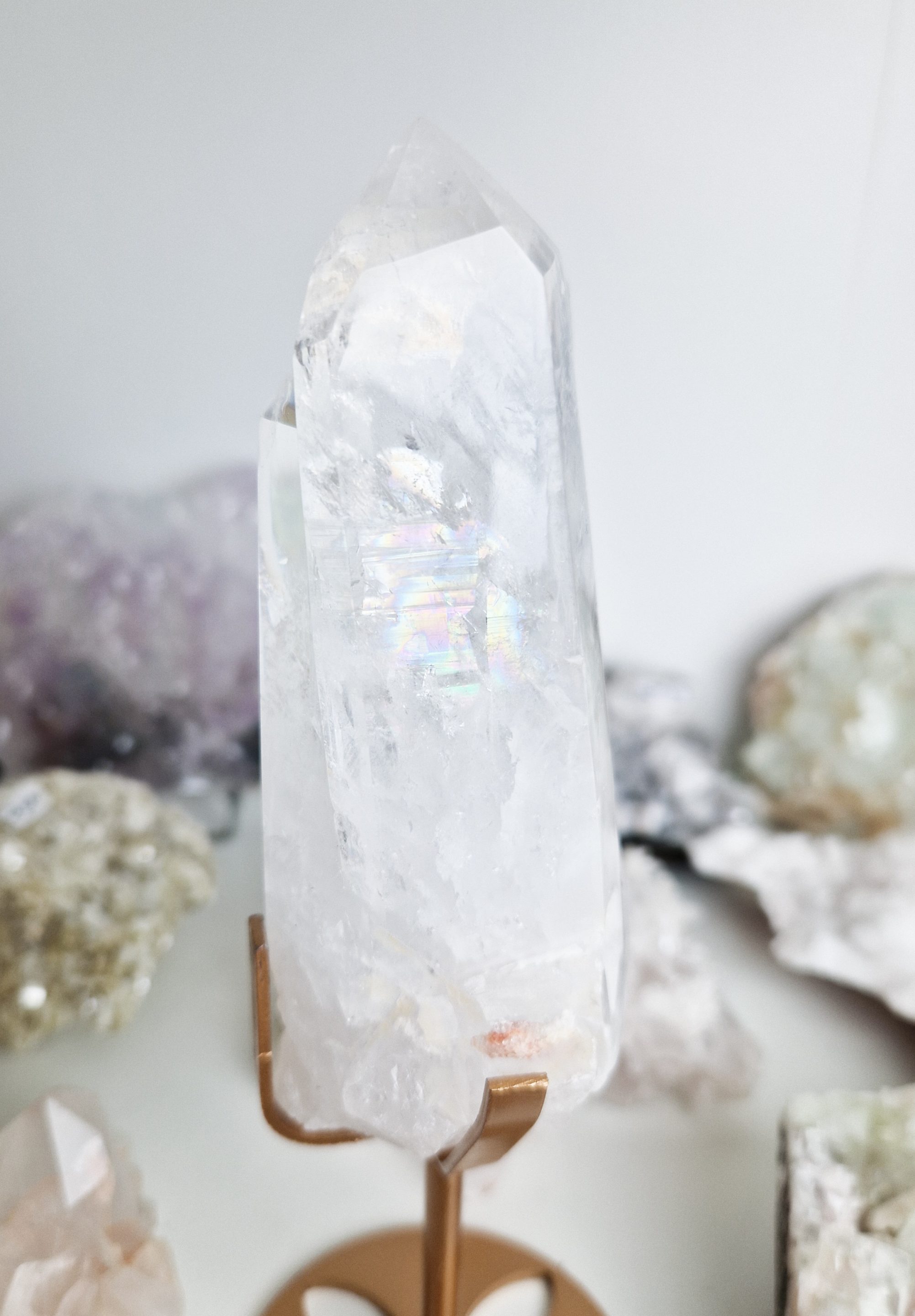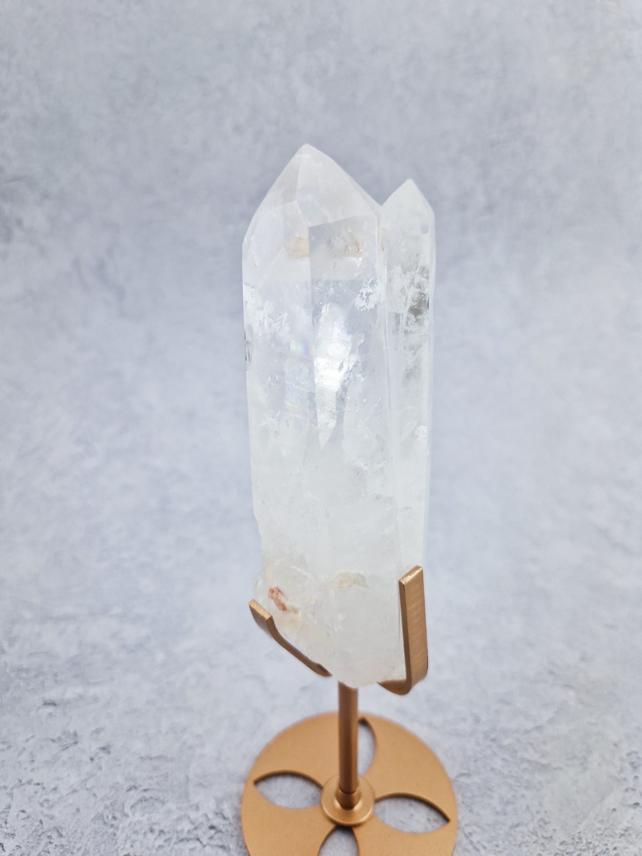 Bergkristal staat bekend om zijn zuiverende werking en brengt rust, helderheid en een positieve energie. In combinatie met de stijlvolle standaard, is dit een echte eyecatcher die perfect tot zijn recht komt in de woonkamer, slaapkamer of een andere rustgevende plek.