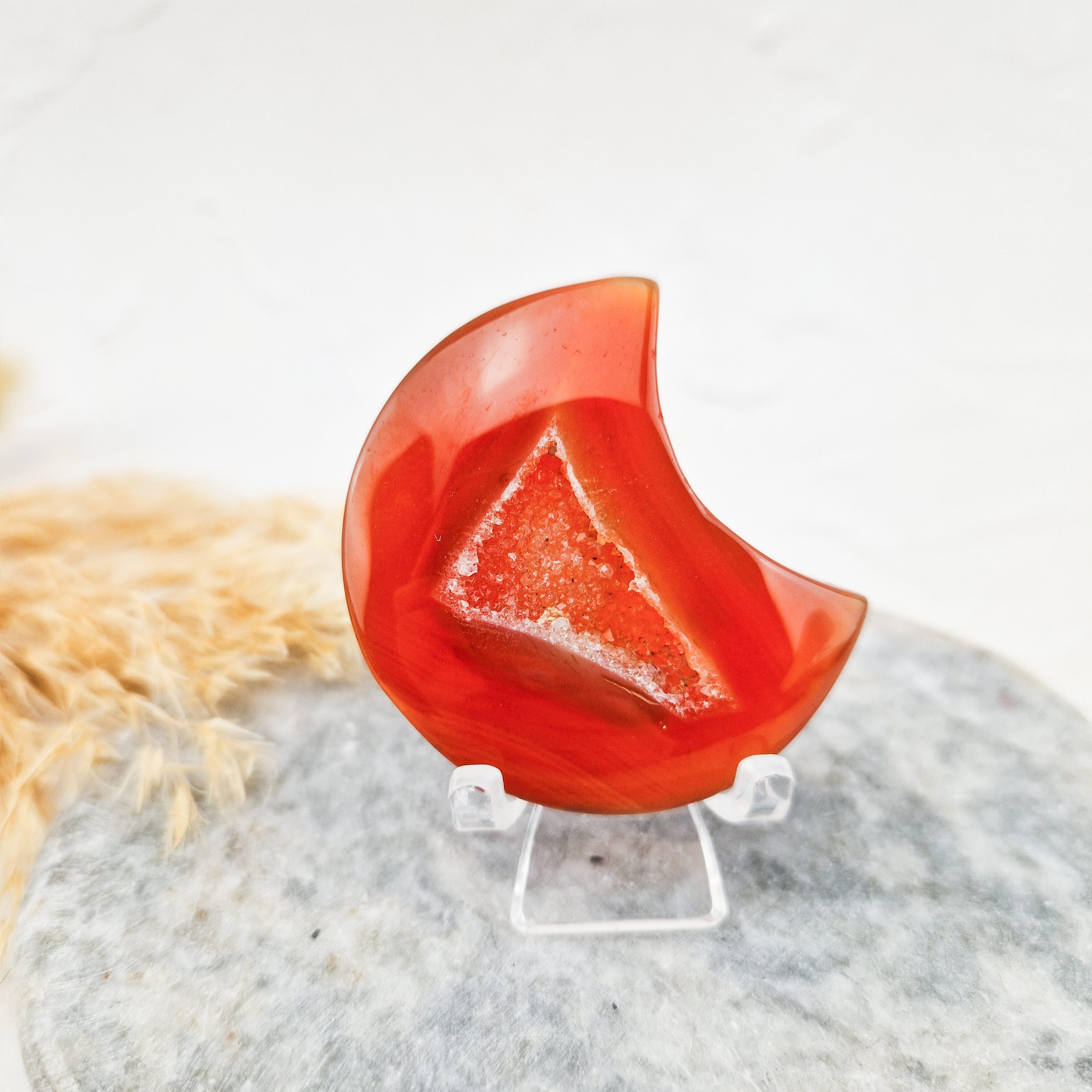 Carneool maan met druzy #6