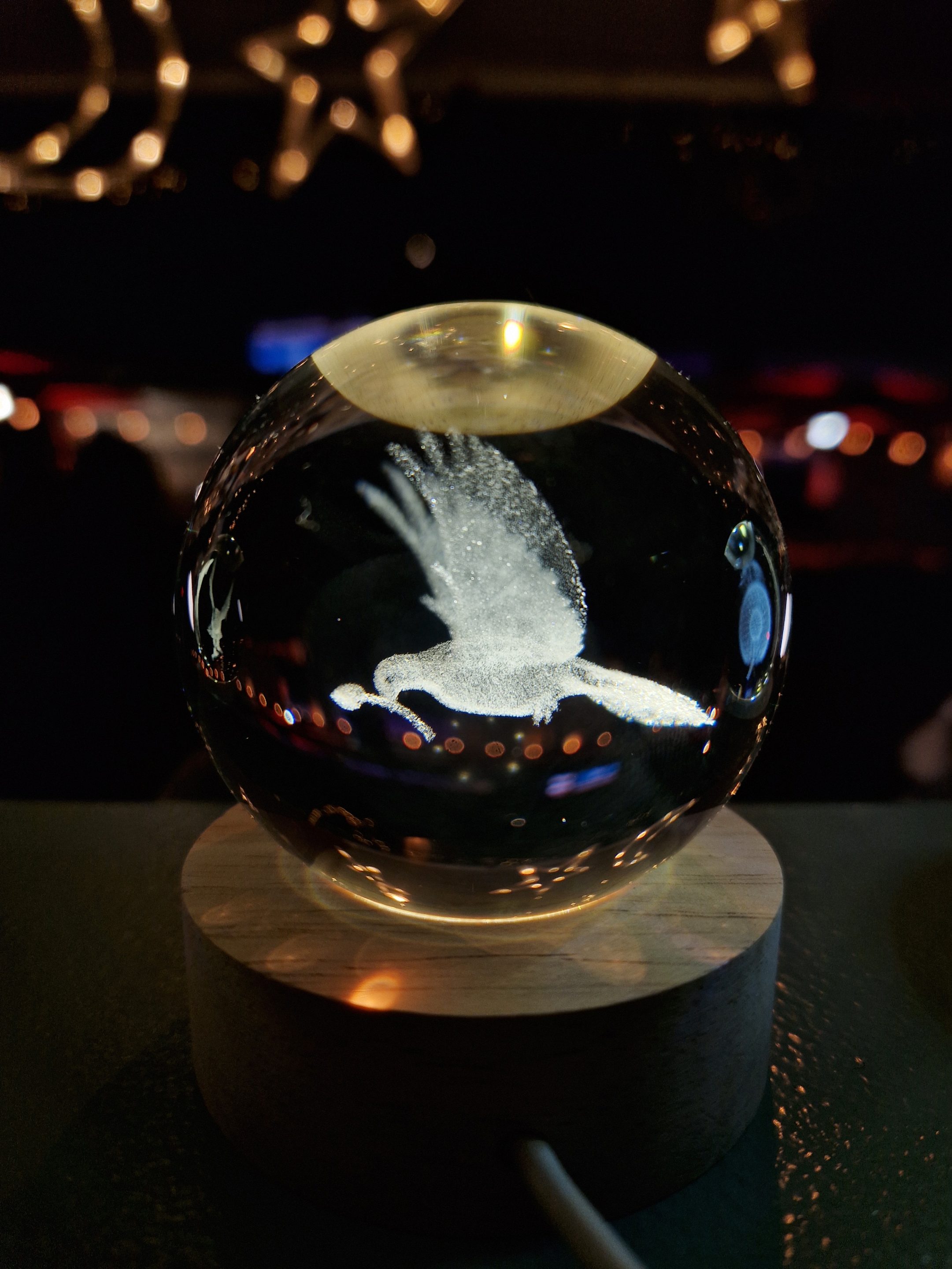 Deze prachtige bol met een 3d gravure van een duif is een echte blikvanger. Wanneer het lampje brandt, komt de gravure tot leven en verspreidt de bol een zachte, sfeervolle gloed.
