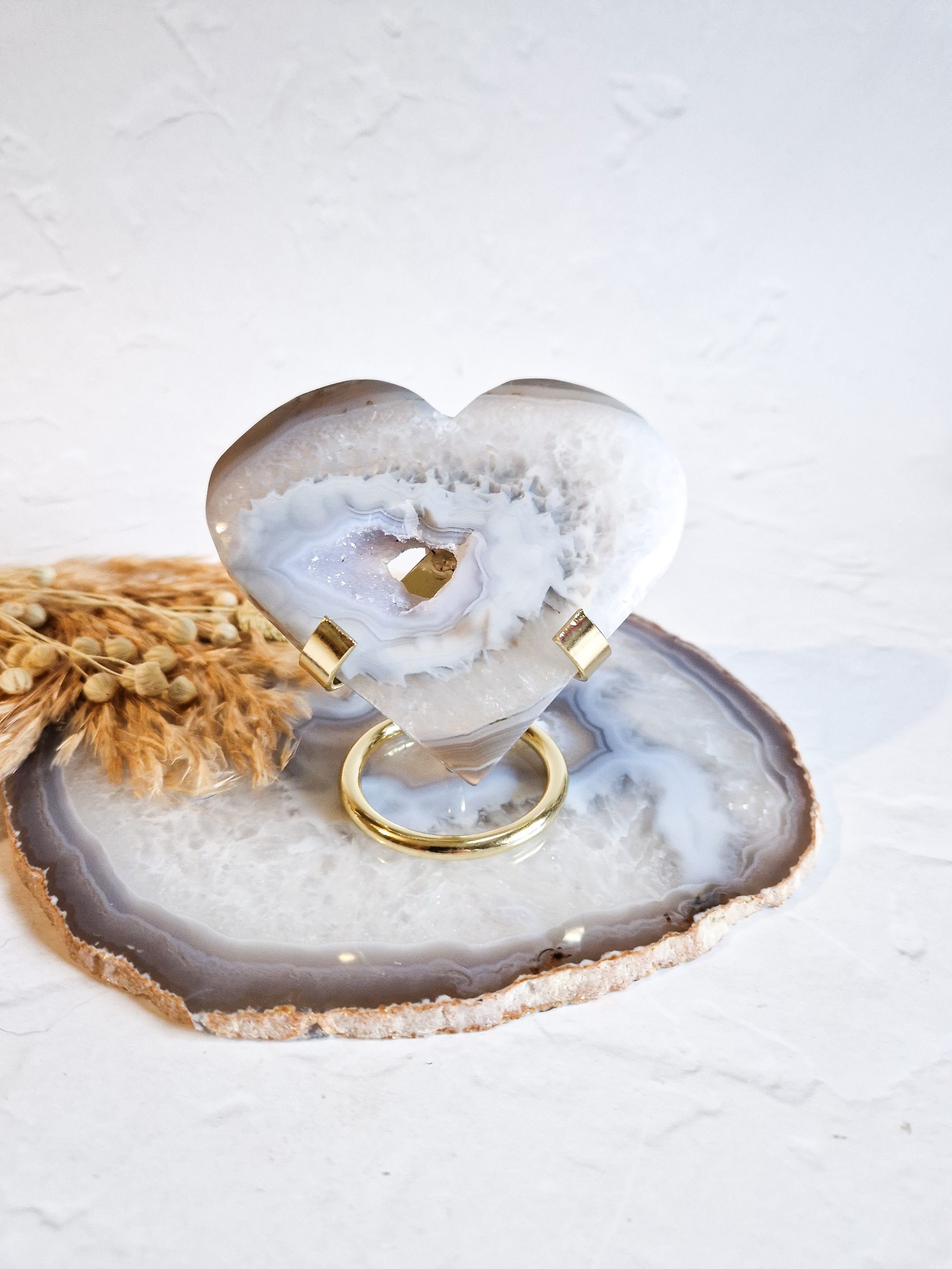 – Stevige metalen edelstenen houder, perfect voor hartvormige carvings of ruwe stukken.