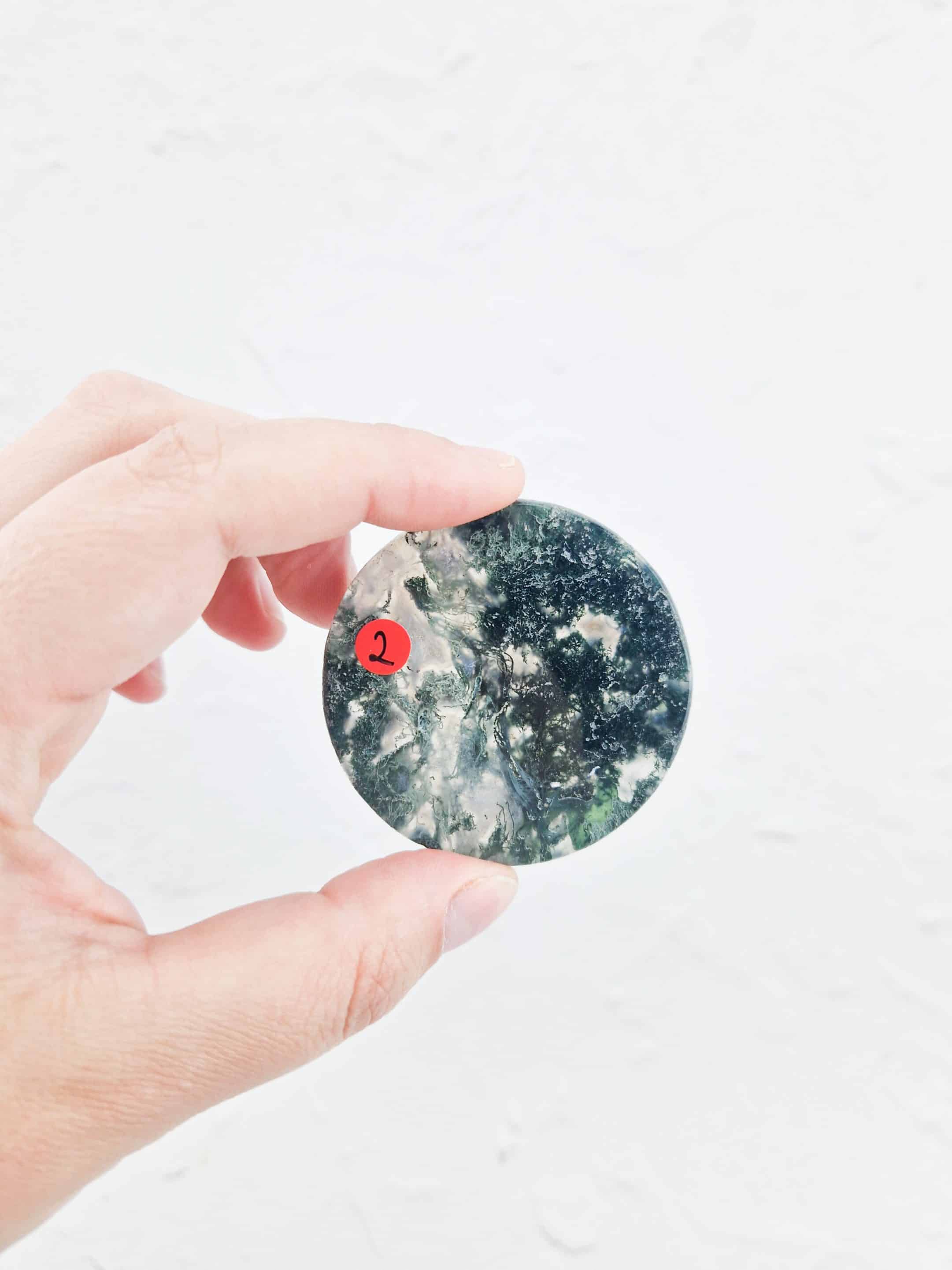 – Prachtig mosagaat schijfje, leuk om neer te zetten ter decoratie of gebruik het schijfje als kleine onderzetter voor andere stenen.