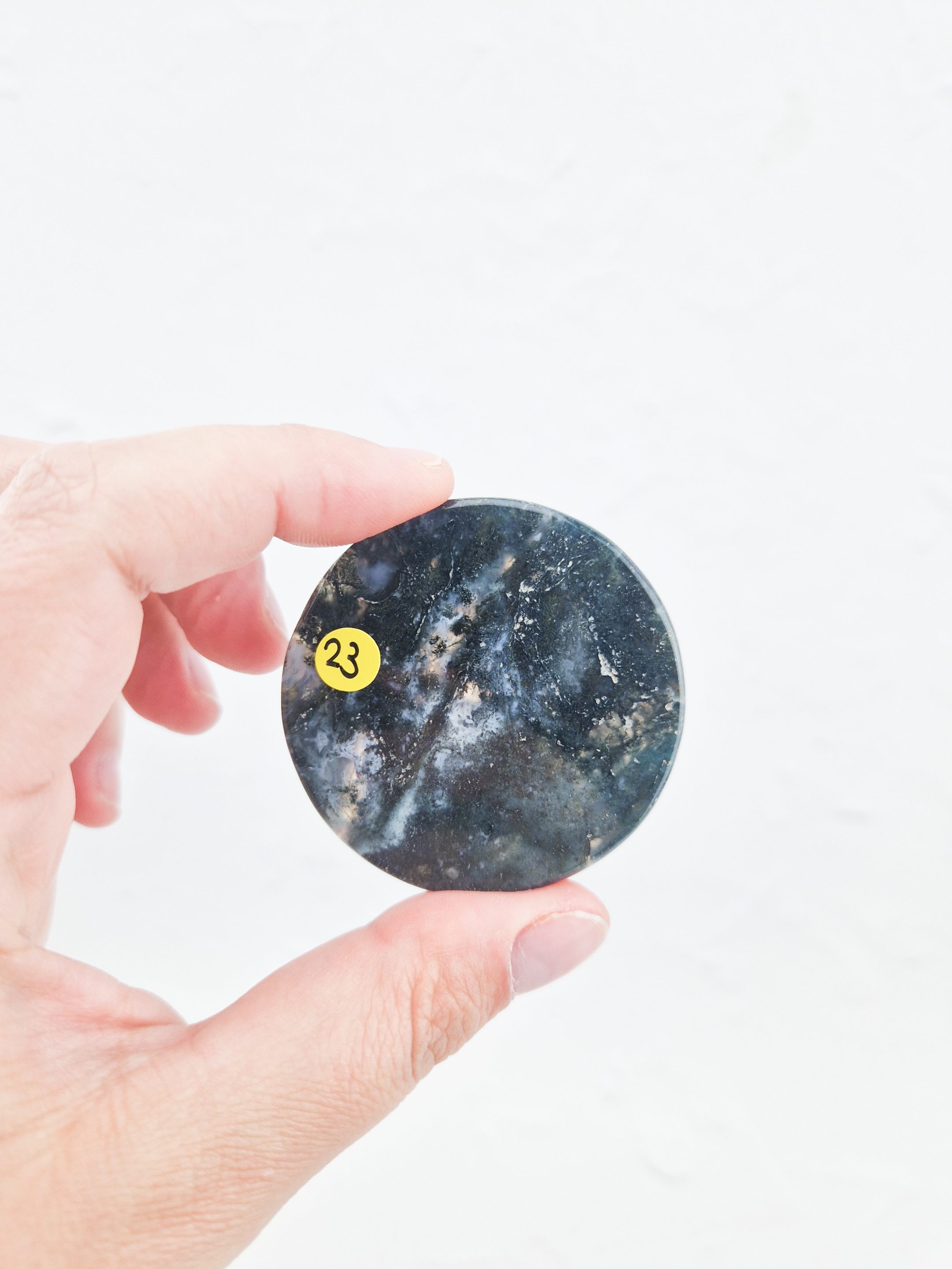 – Prachtig mosagaat schijfje, leuk om neer te zetten ter decoratie of gebruik het schijfje als kleine onderzetter voor andere stenen.