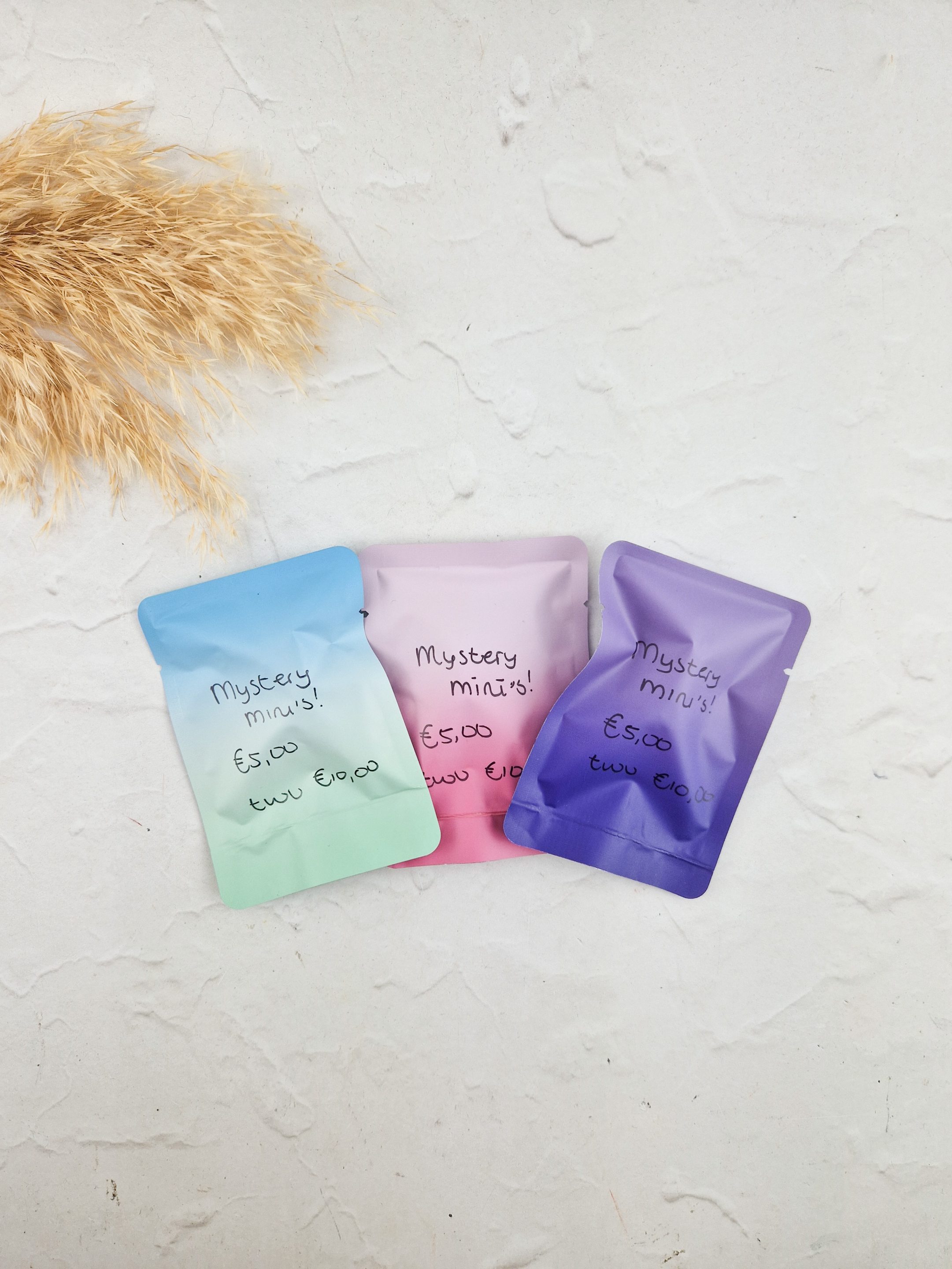 – Je kan wel aangeven welke kleur zakje je wilt Je hebt keuze uit roze, paars, blauw of geel. De kleur van het zakje is echter geen garantie voor de kleuren van de stenen.