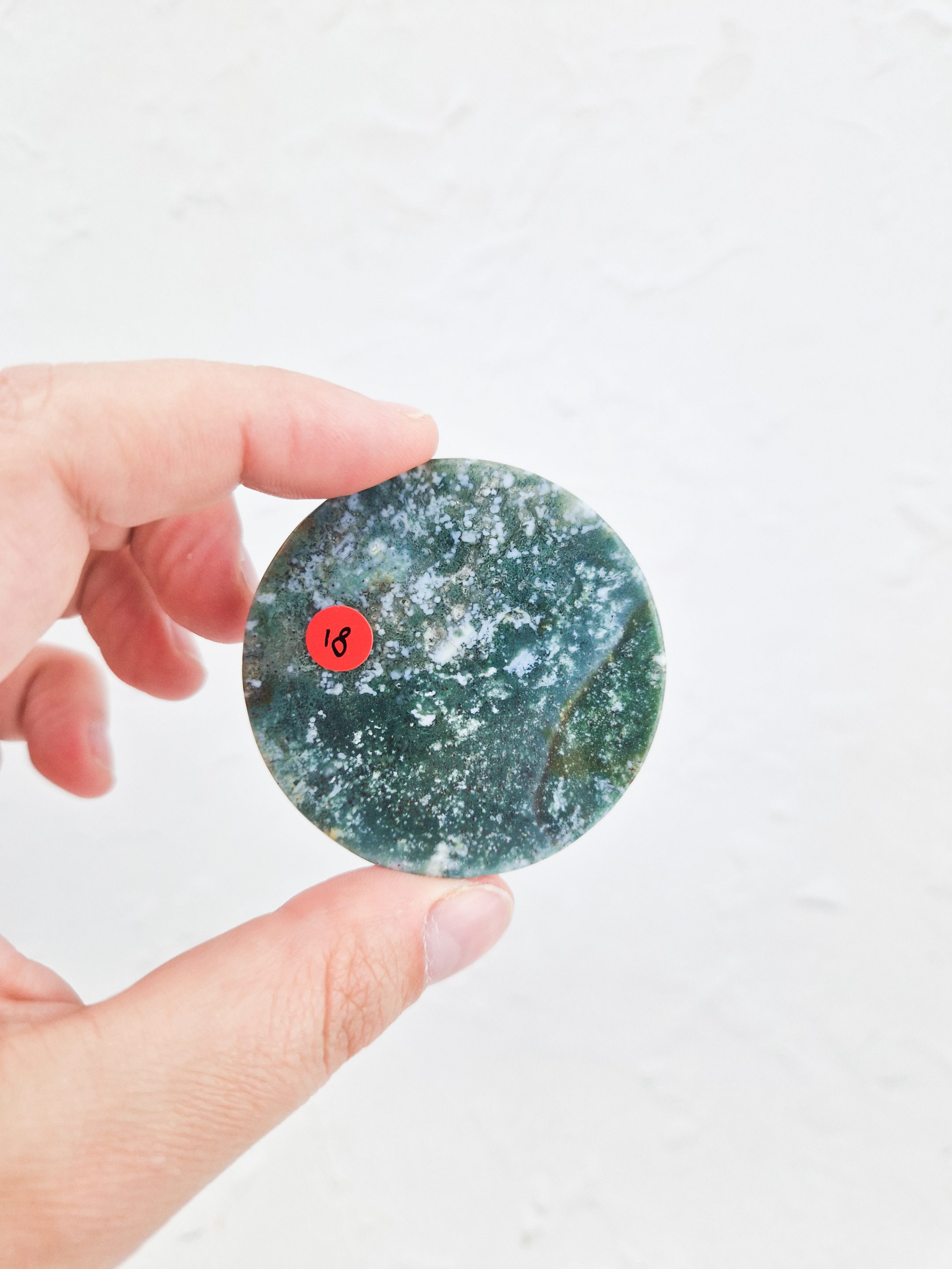 – Prachtig oceaan jaspis schijfje, leuk om neer te zetten ter decoratie of gebruik het schijfje als kleine onderzetter voor andere stenen.