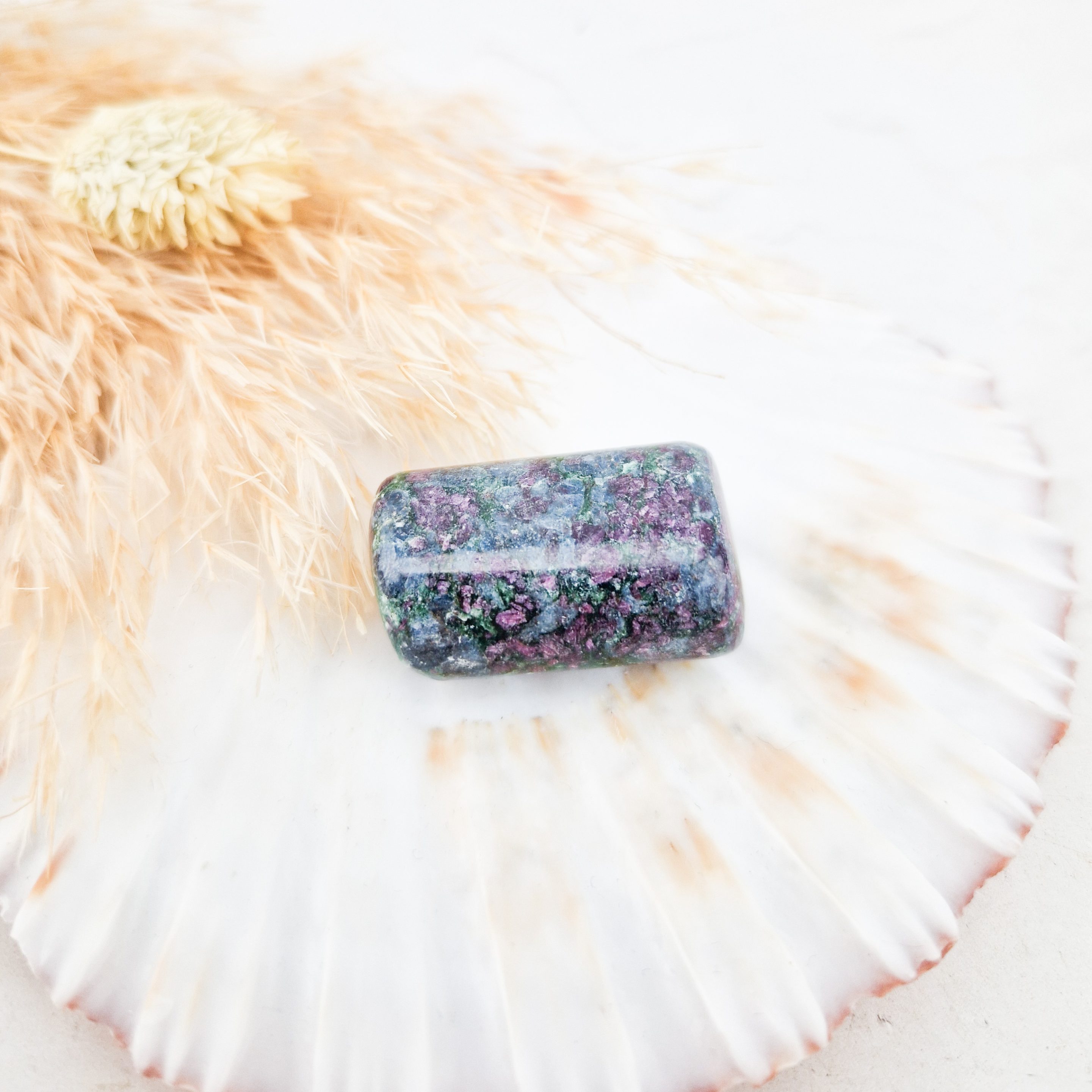 – Robijn in fuchsiet is een combinatiesteen waarbij robijn kristallen zijn ingesloten in een matrix van fuchsiet.