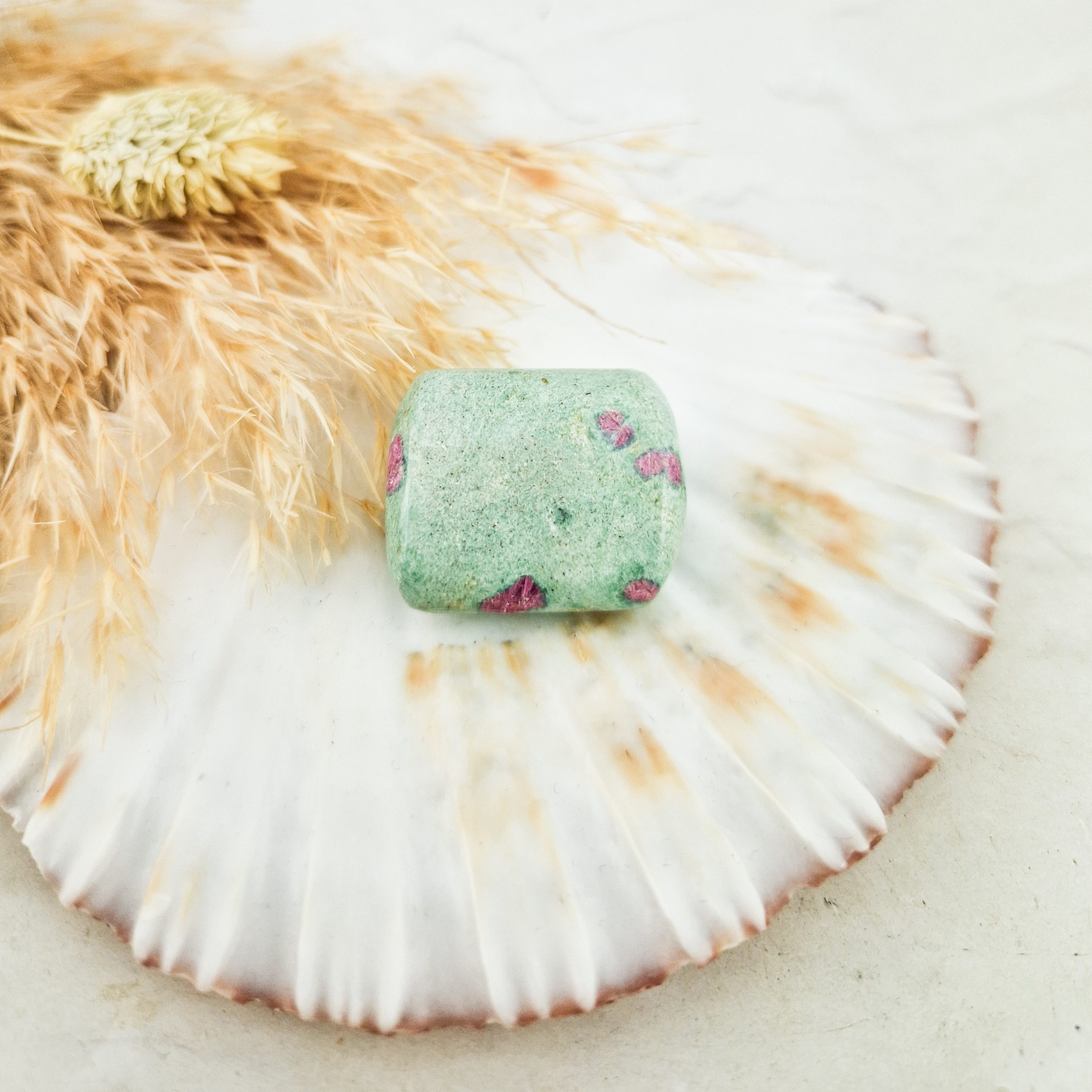 Robijn in fuchsiet trommelsteen #3