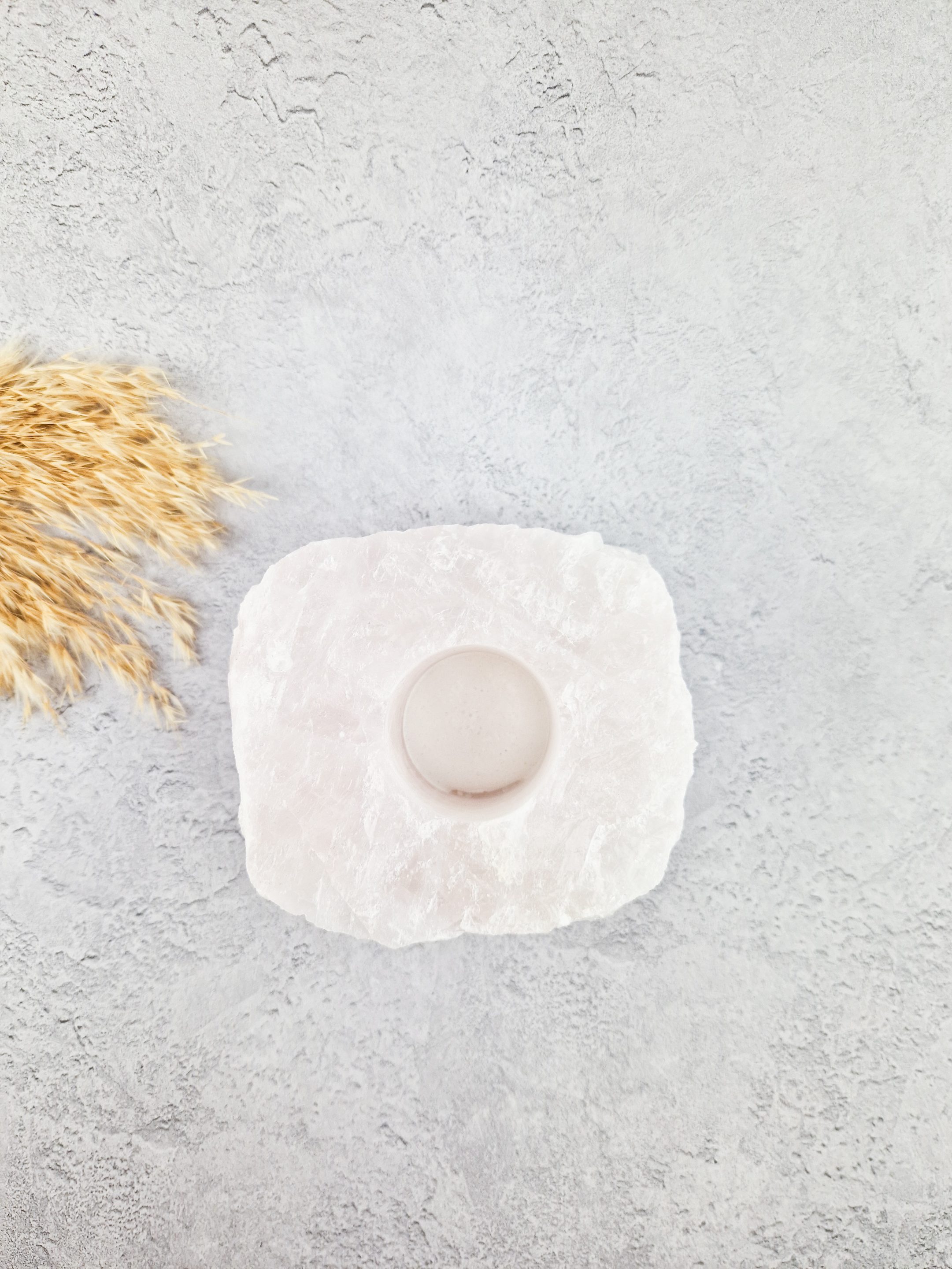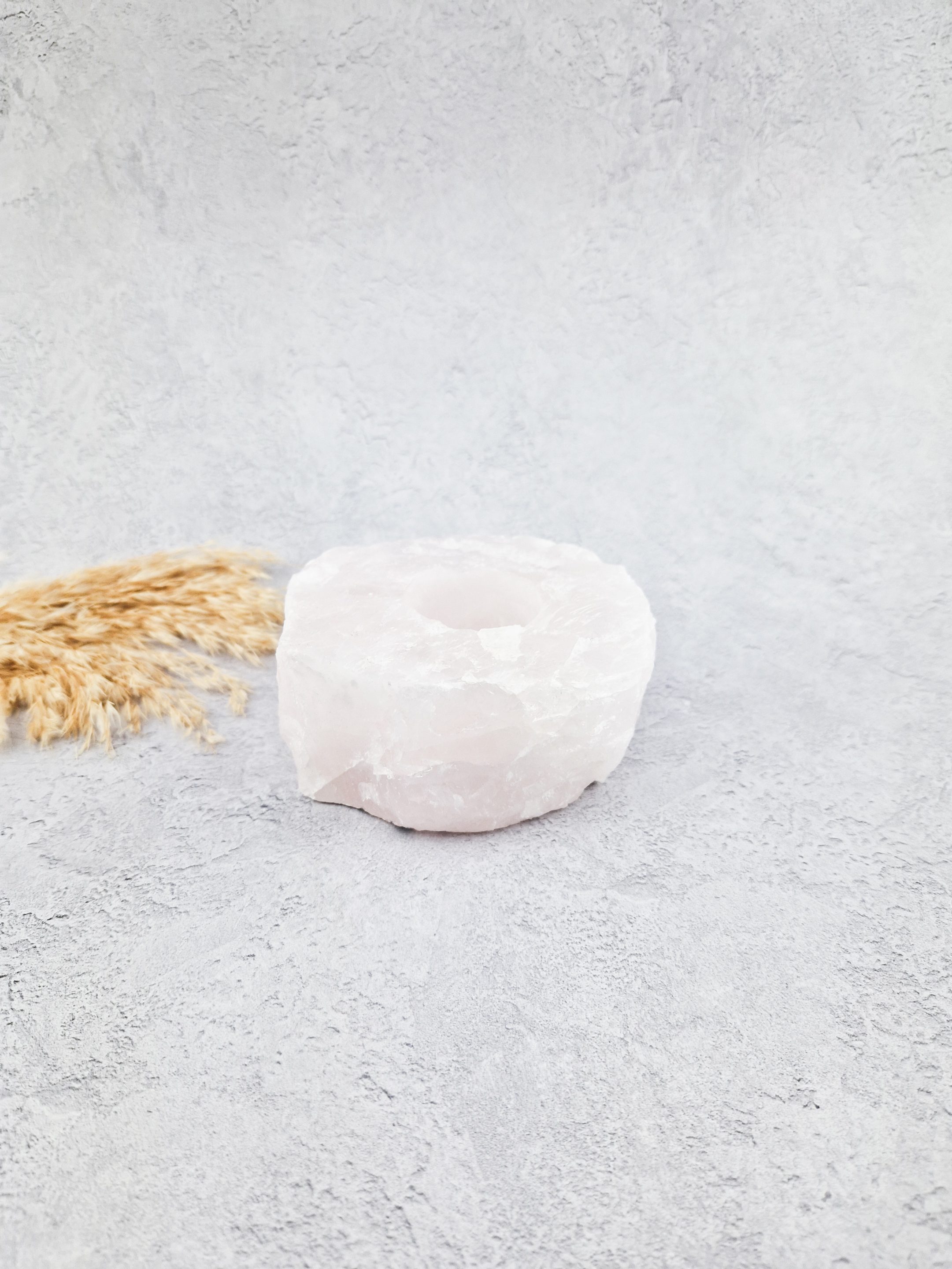 Mooie rozenkwarts waxinelichthouder. Deze waxinelichthouder is mooi ruw gelaten. Dit geeft een unieke en natuurlijke uitstraling.