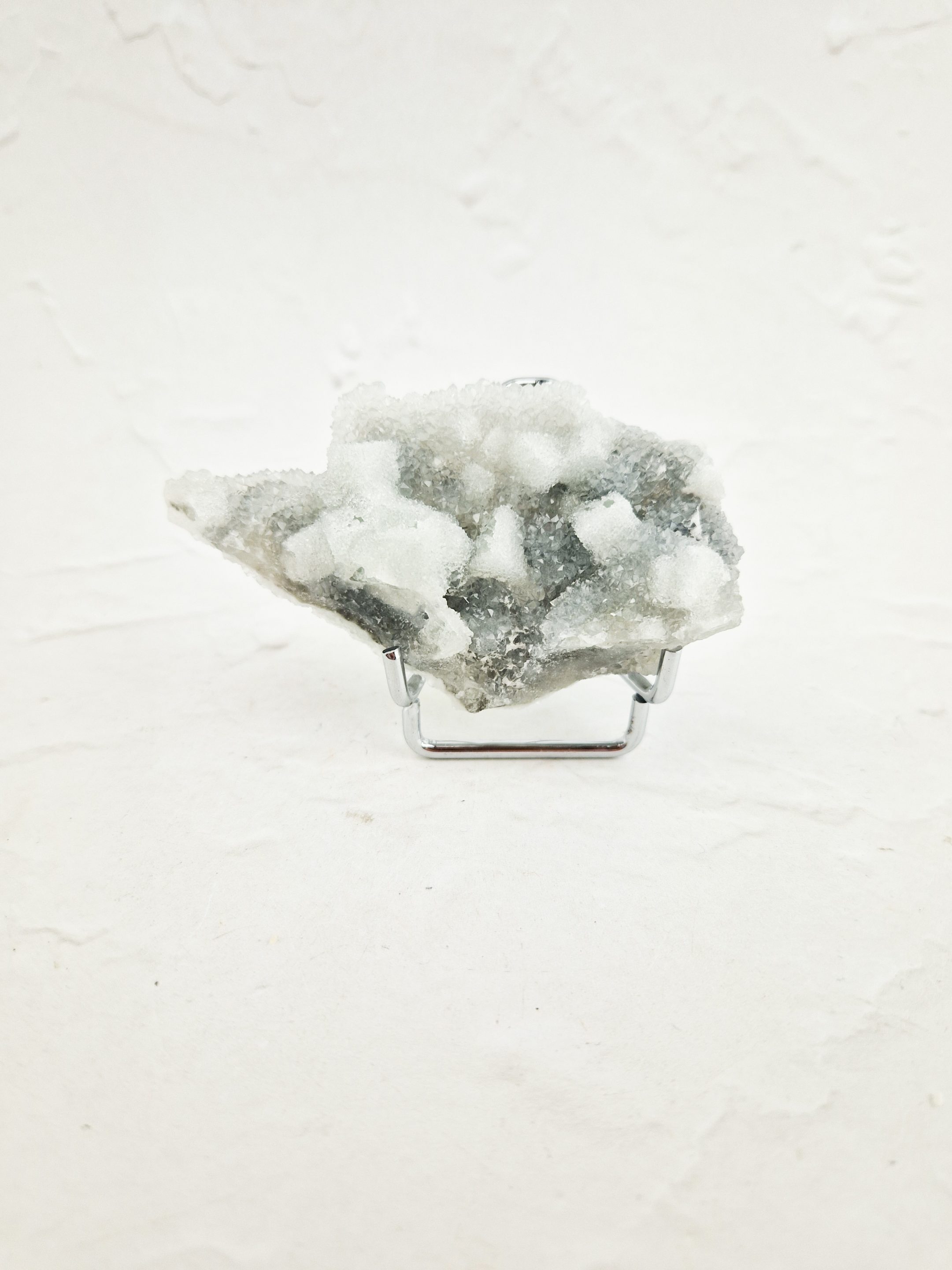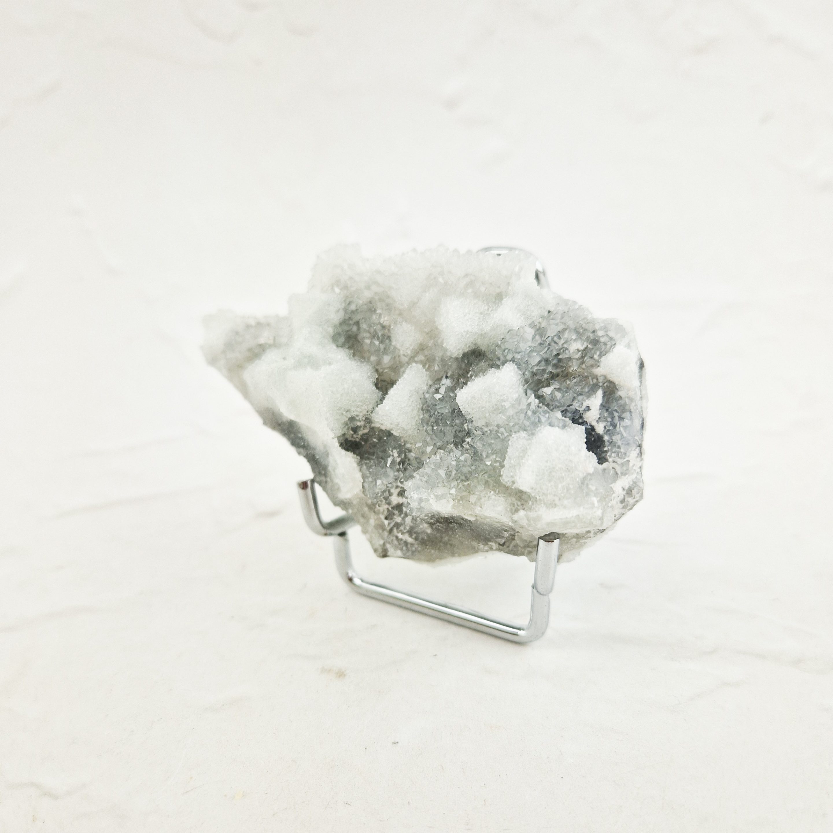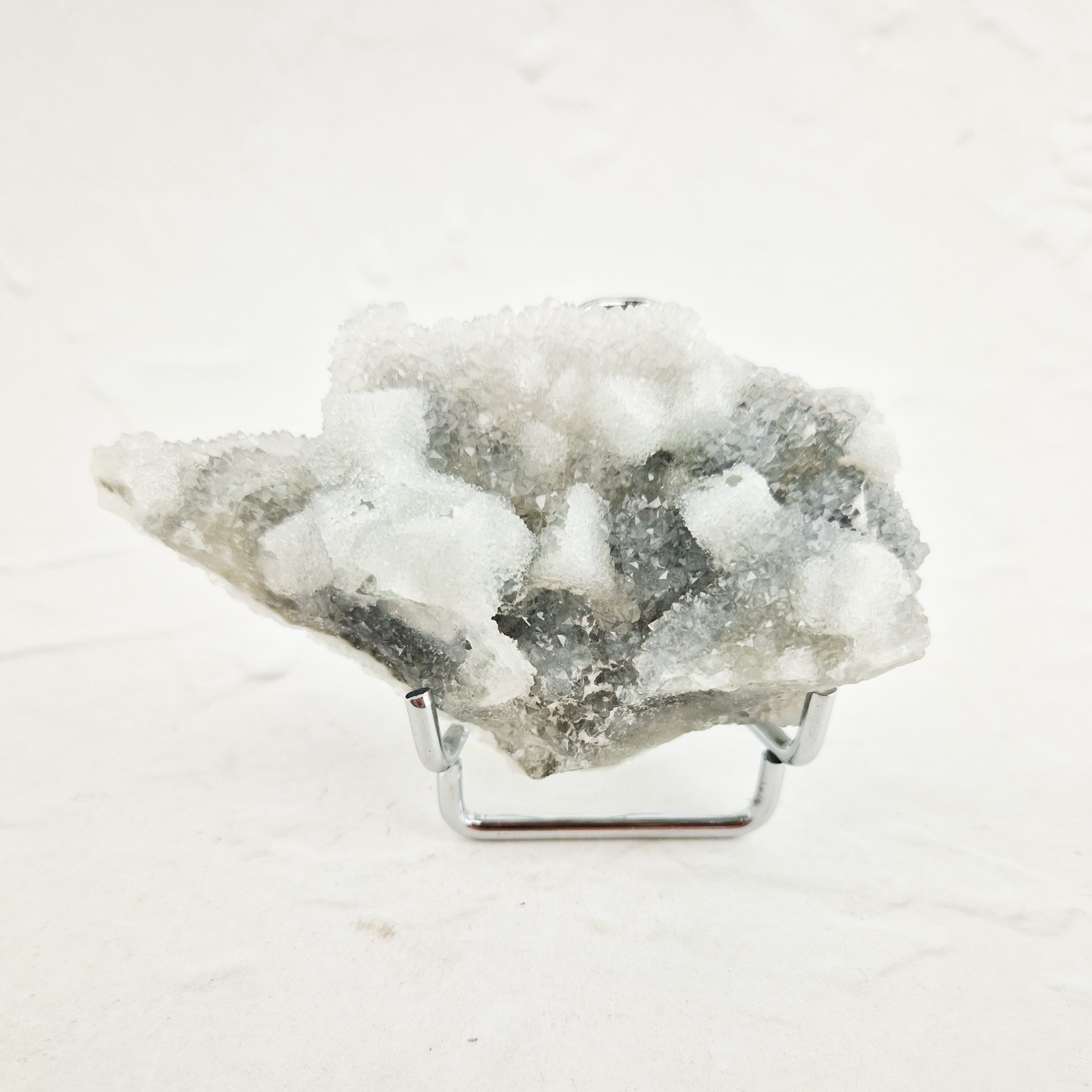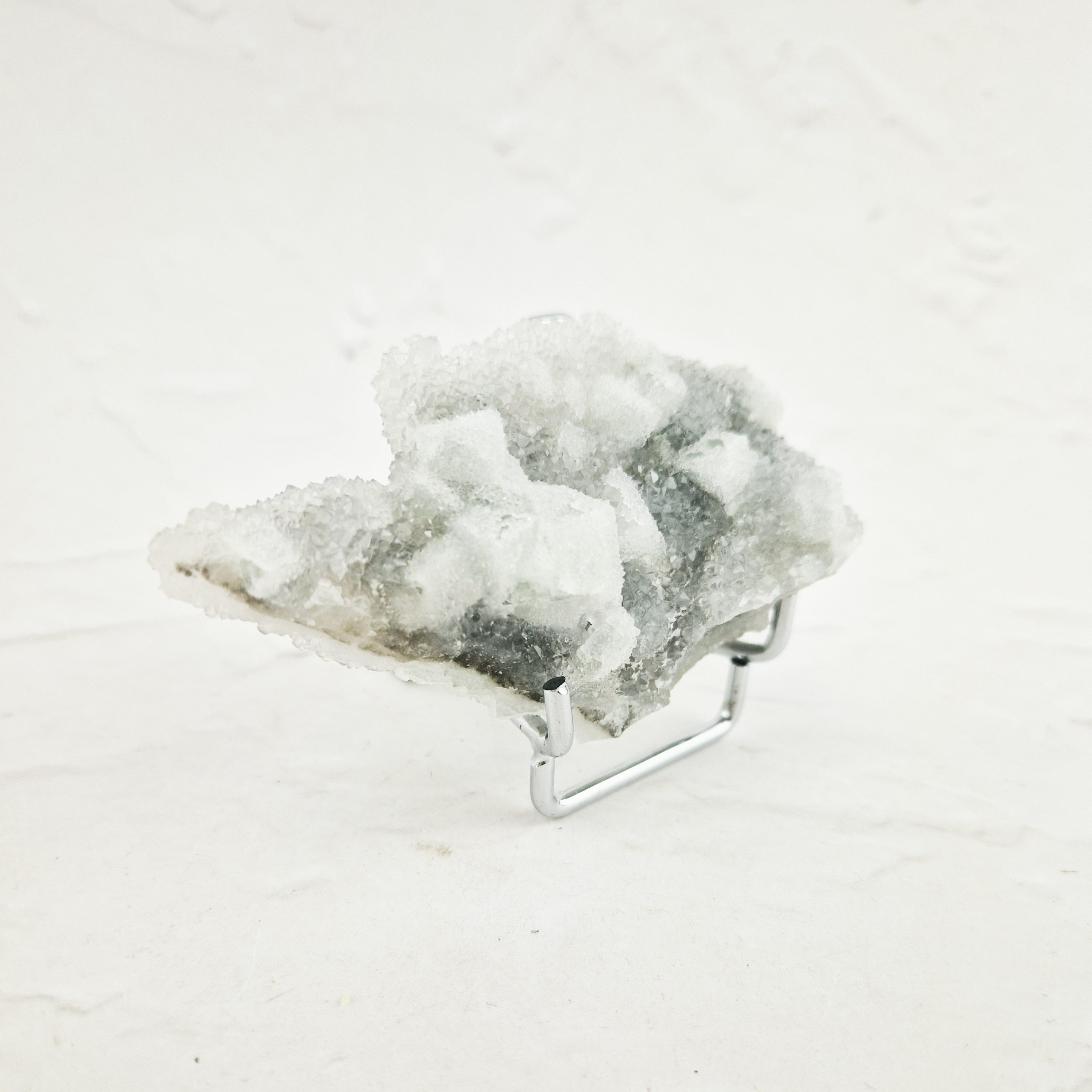 Deze suiker fluoriet clustser is bedekt met een prachtig laagje chalcedoon. De chalcedoon zorgt voor prachtige glinsteringen, alsof er een laagje suiker over de cluster heen ligt. Deze cluster is afkomstig uit Quanzhou, China
