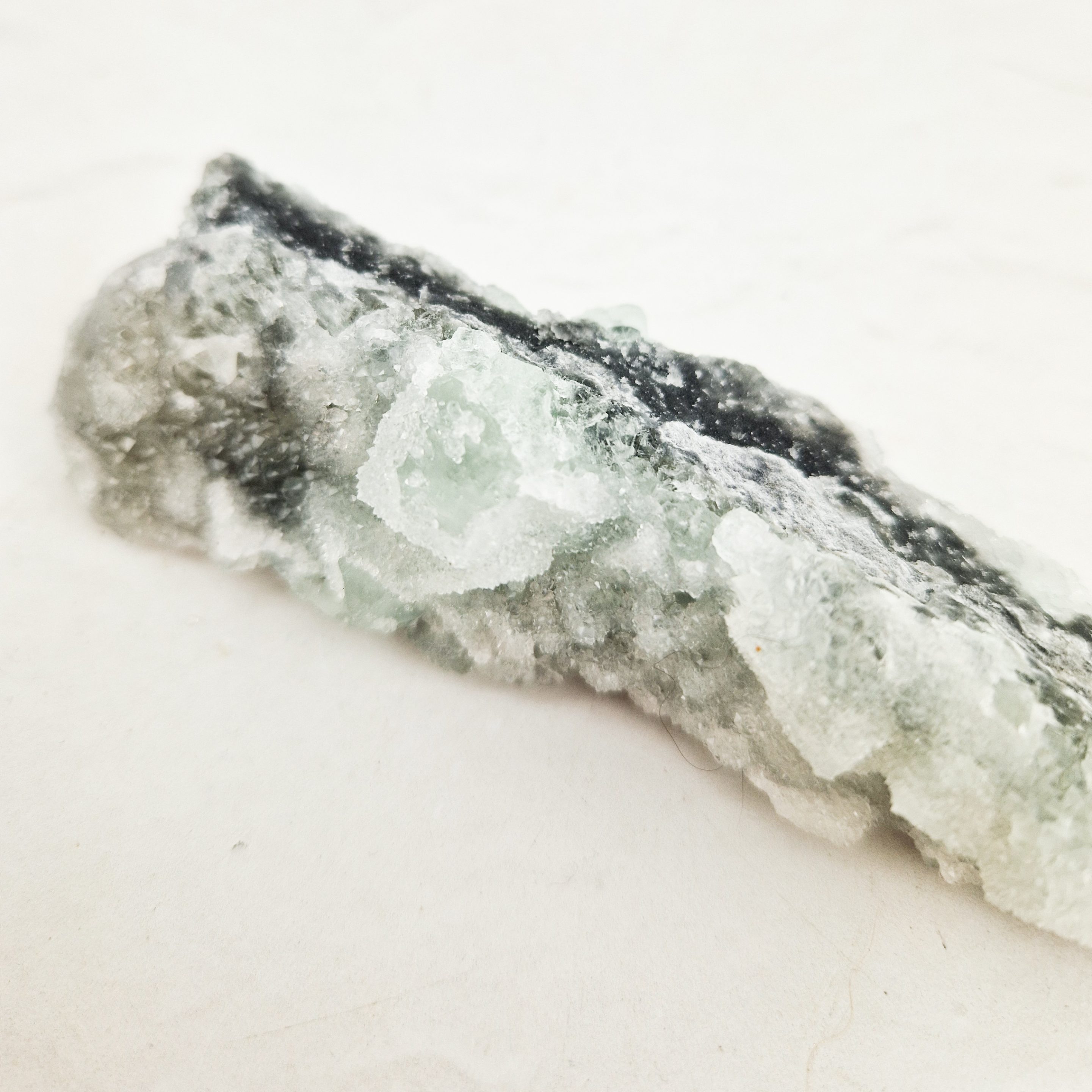 Deze suiker fluoriet clustser is bedekt met een prachtig laagje chalcedoon. De chalcedoon zorgt voor prachtige glinsteringen, alsof er een laagje suiker over de cluster heen ligt. Deze cluster is afkomstig uit Quanzhou, China
